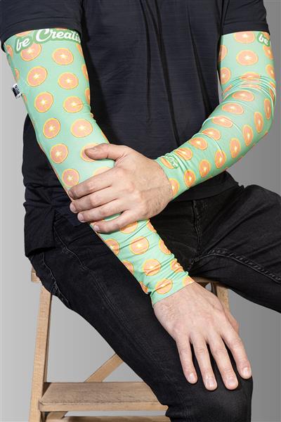 Jedna para elastycznych rękawów RPET, wykonanych na zamówienie, z nadrukowaną grafiką sublimacyjną na całej powierzchni. Wykonane w 92% z poliestru RPET i w 8% z elastanu (185 g/m2), z charakterystyczną metką RPET. Min. ilość: 50 szt. Rozmiary: M (8×12×48 cm), L (9,5×13,5×52 cm).