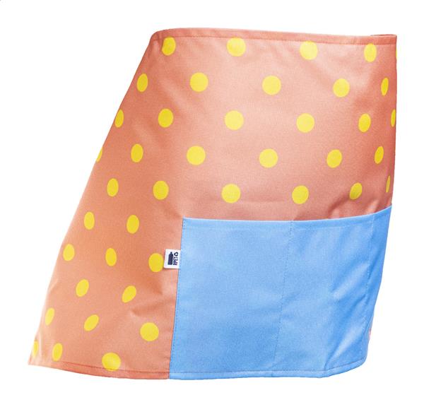 Fartuch bistro wykonany na zamówienie z poliestru 600D RPET z potrójną kieszenią z przodu, nadrukowaną metodą sublimacji grafiką na całej powierzchni i charakterystyczną metką RPET. Min. ilość: 25 szt.