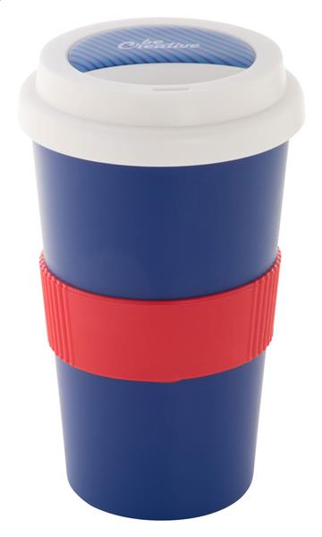 Personalizowany plastikowy kubek termiczny z podwójnymi ściankami, pokrywką do picia i silikonowym uchwytem. 400ml. Min. ilość: 50 szt.
