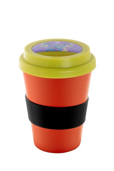 Personalizowany plastikowy kubek termiczny z podwójnymi ściankami, pokrywką do picia i silikonowym uchwytem. 300ml. Min. ilość: 50 szt.