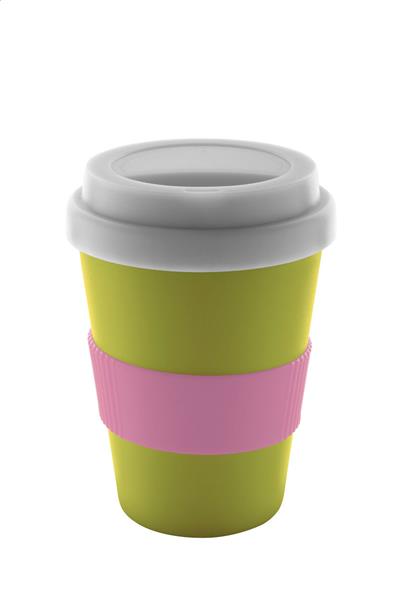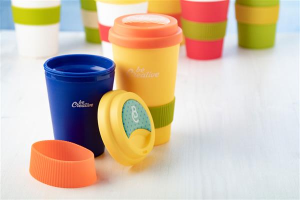 Personalizowany plastikowy kubek termiczny z podwójnymi ściankami, pokrywką do picia i silikonowym uchwytem. 300ml. Min. ilość: 50 szt.