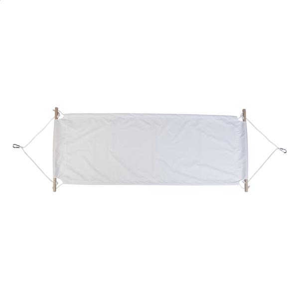 Personalizowany hamak z poliestru 600D RPET z nadrukiem w full kolorze i drewnianą ramą. Zawiera 2 metalowe karabińczyki. Z nadrukowaną grafiką sublimacyjną. Limit wagowy: 100 kg. Min. ilość: 5 szt.