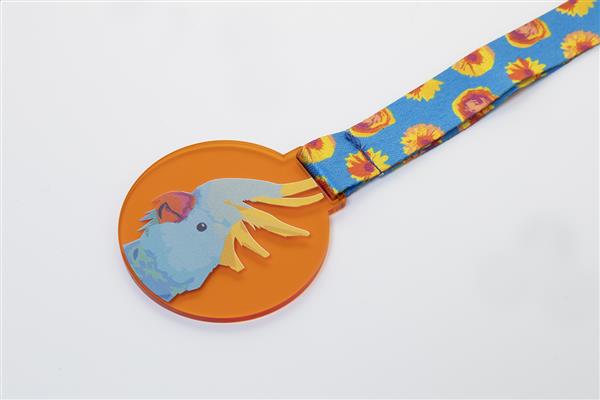 Personaizowany medal akrylowy z full kolorową grafiką. Na smyczy RPET z nadrukiem sublimacyjnym. Z nadrukowaną grafiką sublimacyjną i UV LED. Min.ilość: 100 szt.