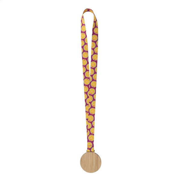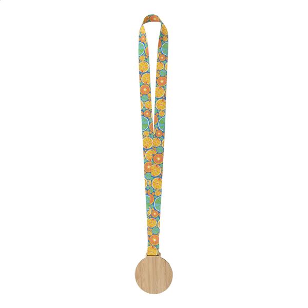 Personaliowany medal bambusowy na smyczy RPET z nadrukiem sublimacyjnym. Z nadrukowaną grafiką sublimacyjną. Min.ilość: 100 szt