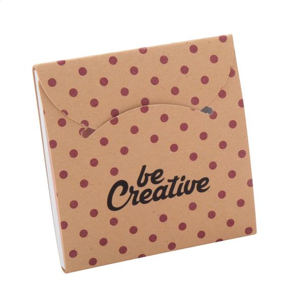 Description: Personalizowany notatnik z samoprzylepnymi karteczkami z okładką z papieru kraft z recyklingu. Zawiera 50 karteczek samoprzylepnych w rozmiarze 75×75 mm i 100 plastikowych znaczników do stron w 5 różnych kolorach (44×12 mm). Cena obejmuje nadruk full kolor na okładce zewnętrznej. Min. ilość: 100 szt. Primary Color: naturalny Material 1: Papier z recyklingu Material 2: […]