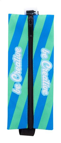 Description: Personalizowana, zapinany na zamek piórnik z poliestru 600D RPET, z gumką umożliwiającą przymocowanie go do okładki notesu. Z nadrukowaną grafiką sublimacyjną i charakterystyczną metką RPET. Min. ilość: 50szt. Primary Color: czarny Material 2: Guma Material 1: 600D Poliester z recyklingu PET Rozmiar: 70×175×5 mm