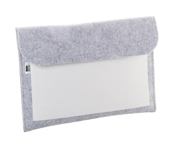 Description: Personalizowany, filcowy pokrowiec na laptopa RPET, z przednią kieszenią z kolorowym nadrukiem i zapięciem na rzep. Z charakterystyczną metką RPET. Pasuje do laptopów do 15″. Cena obejmuje nadruk sublimacyjny. Min.ilość: 25 szt. Primary Color: biały Secondary Color: szary Metka: Z metką Material 1: Filc PET z recyklingu Rozmiar: 370×260 mm