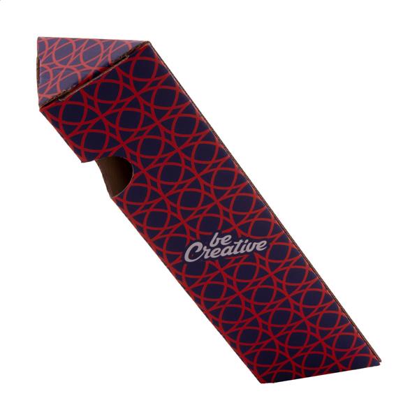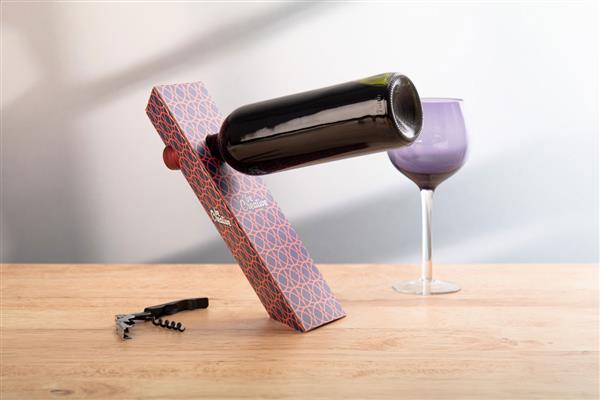 Description: Personalizowany grawitacyjny uchwyt na butelkę wina z tektury falistej z nadrukiem full color. Dostarczany do samodzielnego złożenia. Min. ilość: 50 szt. Primary Color: biały Material 1: Karton Rozmiar: 90×300×50 mm