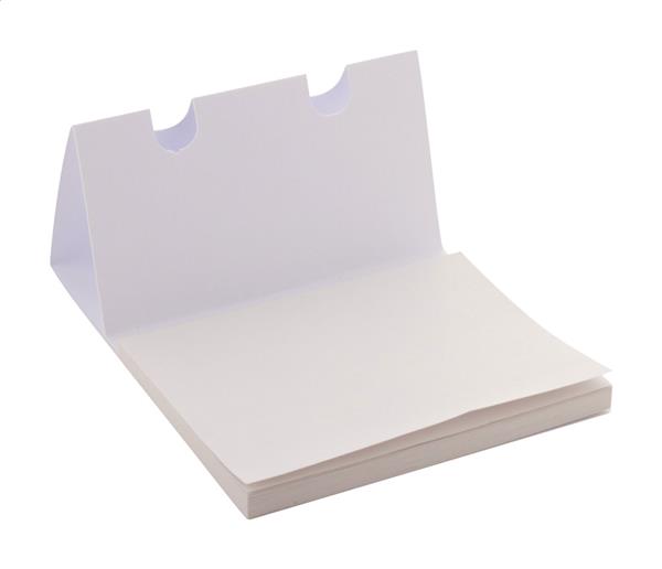 Description: Wykonany na zamówienie, papierowy uchwyt na długopis z karteczkami samoprzylepnymi. Zawiera 50 arkuszy karteczek samoprzylepnych z papieru z recyklingu (100×75 mm). Cena zawiera nadruk full kolor na wierzchu. Min. ilość: 100 szt. Primary Color: biały Material 1: Papier z recyklingu Material 2: Papier Rozmiar: 100×50×122 mm