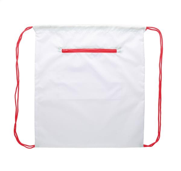 Description: Personalizowany worek ze sznurkiem z zapinaną na zamek przednią kieszenią z ochroną RFID, poliester 190T. Z nadrukowaną grafiką sublimacyjną na całej powierzchni. Min. ilość: 25 szt. Primary Color: czerwony Material 1: 190T poliester Rozmiar: 370×425 mm