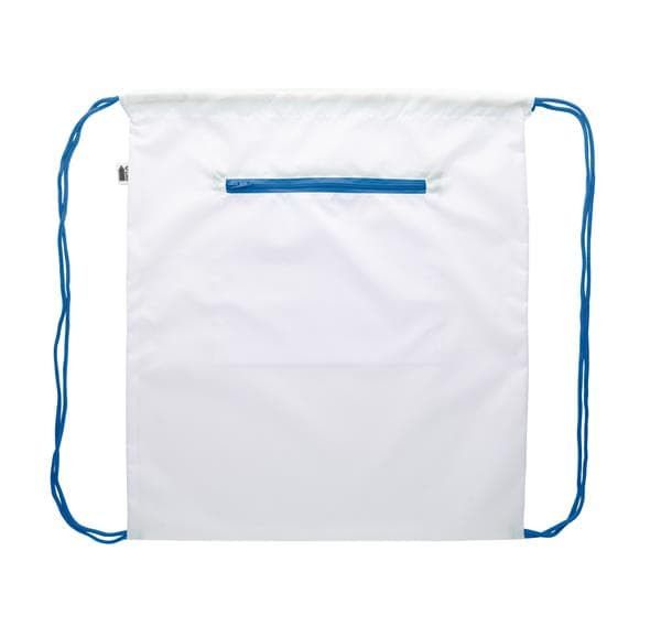Description: Personalizowany worek ze sznurkiem z zapinaną na zamek przednią kieszenią z ochroną RFID, poliester 190T. Z nadrukowaną grafiką sublimacyjną na całej powierzchni. Min. ilość: 25 szt. Primary Color: niebieski Rozmiar: 370×425 mm Material 1: 190T pongee z recyklingu PET