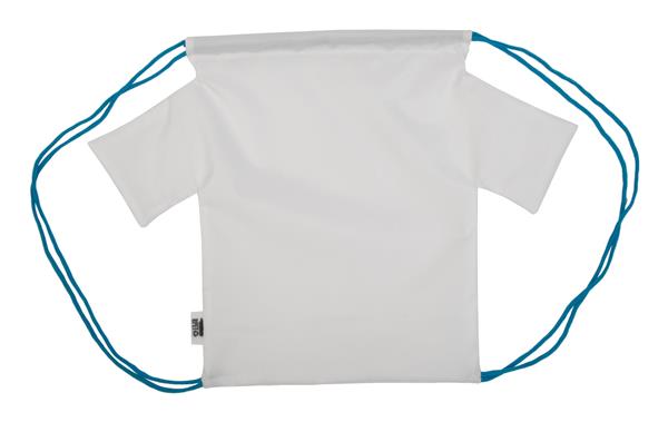 Description: Personalizowany worek w kształcie koszulki z kolorowymi sznurkami, 190T poliester RPET. Z nadrukowaną na całej powierzchni grafiką sublimacyjną i charakterystyczną metką RPET. Min. ilość: 25 szt. Primary Color: niebieski Material 1: 190T Poliester z recyklingu PET Metka: Z metką Rozmiar: 610×460 mm Pojemność torby: 22.4 l Secondary Color: biały