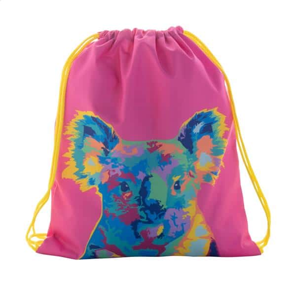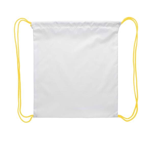 Description: Personalizowany worek z kolorowymi sznurkami, poliester 190T. Z nadrukowaną grafiką sublimacyjną na całej powierzchni. Min. ilość: 25 szt. Primary Color: żółty Secondary Color: biały Material 1: 190T poliester Gramatura 1: 190 g/m2 Rozmiar: 300×345 mm Ładowność torby: 10 kg Pojemność torby: 4 l