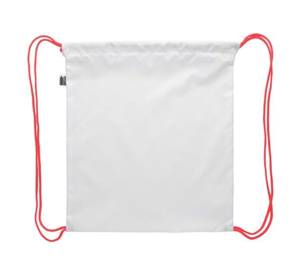 Description: Personalizowany worek z kolorowymi sznurkami, poliester 190T RPET. Z nadrukowaną grafiką sublimacyjną na całej powierzchni. Z metką RPET. Min. ilość: 25 szt. Primary Color: czerwony Ładowność torby: 10 kg Secondary Color: biały Material 1: Poliester z recyklingu PET Rozmiar: 300×345 mm Pojemność torby: 4 l