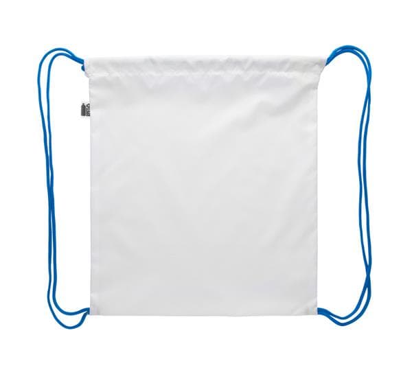Description: Personalizowany worek z kolorowymi sznurkami, poliester 190T RPET. Z nadrukowaną grafiką sublimacyjną na całej powierzchni. Z metką RPET. Min. ilość: 25 szt. Primary Color: niebieski Ładowność torby: 10 kg Secondary Color: biały Material 1: Poliester z recyklingu PET Rozmiar: 300×345 mm Pojemność torby: 4 l