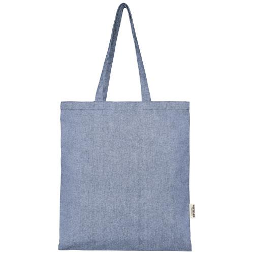 Torba na zakupy wykonana z mieszanki bawełny i poliestru pochodzących z recyklingu o gramaturze 150 g/m2. Torbę można łatwo złożyć, aby zmieściła się w niewielkiej przestrzeni i jest idealnym towarzyszem podczas różnych czynności, takich jak zakupy spożywcze, jednodniowe wycieczki lub projekty rzemieślnicze. Bawełna poddana recyklingowi pochodzi z tzw. wstępnych odpadów konsumpcyjnych wytwarzanych przez zakłady włókiennicze w trakcie procesu cięcia. Podobne kolory są mieszane ze sobą, więc nie jest wymagane dodatkowe barwienie. Ze względu na charakter bawełny pochodzącej z recyklingu mogą występować niewielkie różnice w kolorze. Dodaje to bardziej autentycznego wyglądu. Do każdej torby dołączony jest również znacznik Aware™. Ta innowacyjna funkcja pozwala użytkownikom prześledzić za pomocą kodu QR pochodzenie produktu i pokonaną przez niego drogę, zwiększając przejrzystość łańcucha dostaw i wspierając silniejszy związek między produktem a jego procesem produkcyjnym. Wytrzymałość do 5 kg. Długość uchwytu: 31 cm.