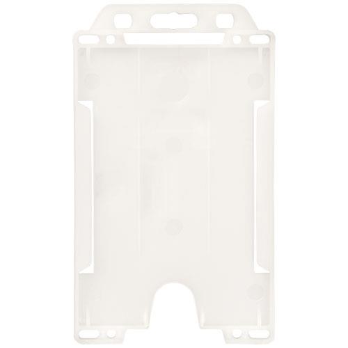Etui na karty w orientacji pionowej wykonane z tworzyw sztucznych pochodzących z recyklingu. Idealne na wystawy, wydarzenia networkingowe oraz w miejscach pracy. Nadaje się do standardowych wizytówek i wejściówek wielkości karty kredytowej. Ze względu na charakter tworzyw sztucznych pochodzących z recyklingu odcienie kolorów mogą się nieznacznie różnić i mogą występować kolorowe plamki. Wyprodukowano w Wielkiej Brytanii.