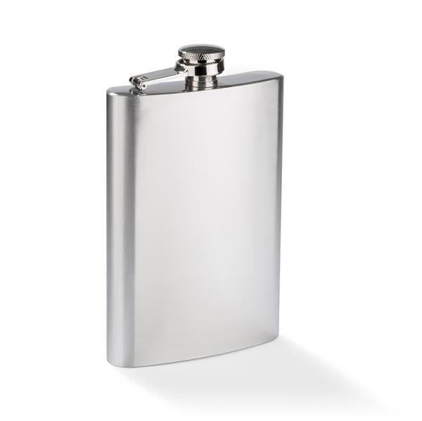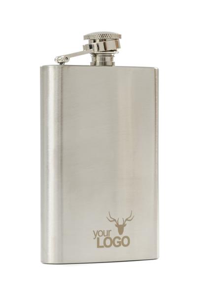 Piersiówka ze stali nierdzewnej o pojemności 240 ml, z bezpiecznym zamknięciem. Logo wykonujemy na powierzchni piersiówki poprzez grawerowanie laserem.