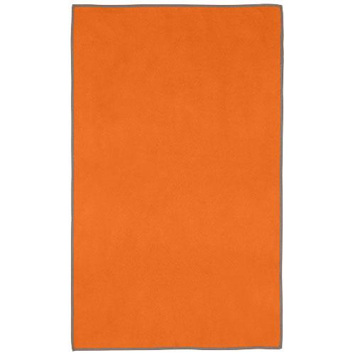 Pieter bardzo chłonny, lekki i szybko schnący ręcznik sportowy wykonany z trwałego i niezwykle miękkiego materiału. Po złożeniu i zabezpieczeniu elastyczną opaską ręcznik zmniejsza się do niewielkich rozmiarów, dzięki czemu nadaje się do zabrania na siłownię, basen lub na wędrówkę z plecakiem albo kemping. Ręcznik ma wymiary 50 x 30 cm i jest wykonany w 90% z poliestru pochodzącego z recyklingu z certyfikatem GRS i w 10% z nylonu. Można go prać w pralce w temperaturze 40°C. Dostarczany z woreczkiem do przechowywania (15,5 x 10 cm) wykonanym z plastiku PET z recyklingu, który zapewnia doskonałe miejsce na nadruk logo.