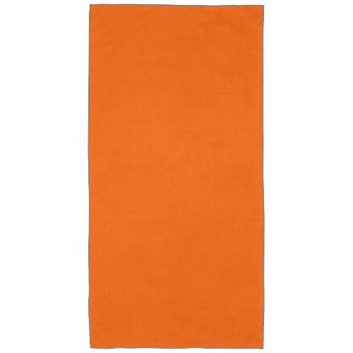 Pieter bardzo chłonny, lekki i szybko schnący ręcznik sportowy wykonany z trwałego i niezwykle miękkiego materiału. Po złożeniu i zabezpieczeniu elastyczną opaską ręcznik zmniejsza się do niewielkich rozmiarów, dzięki czemu nadaje się do zabrania na siłownię, basen lub na wędrówkę z plecakiem albo kemping. Ręcznik ma wymiary 50 x 100 cm i jest wykonany w 90% z poliestru pochodzącego z recyklingu z certyfikatem GRS i w 10% z nylonu. Można go prać w pralce w temperaturze 40°C. Dostarczany z woreczkiem do przechowywania (17 x 13 cm) wykonanym z plastiku PET z recyklingu, który zapewnia doskonałe miejsce na nadruk logo.