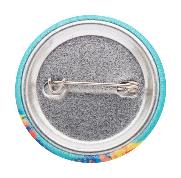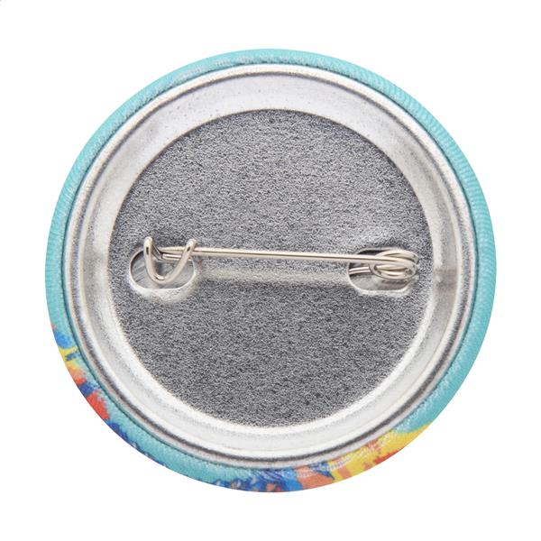 Mała przypinka / pins z personalizowaną wstawką z poliestru RPET z nadrukiem w full kolorze. Cena obejmuje nadruk sublimacyjny. Min. ilość: 100 szt.
