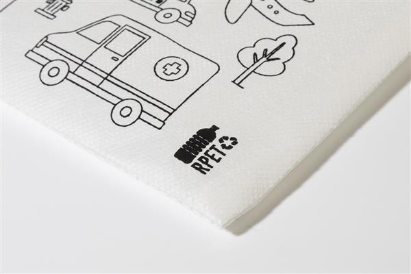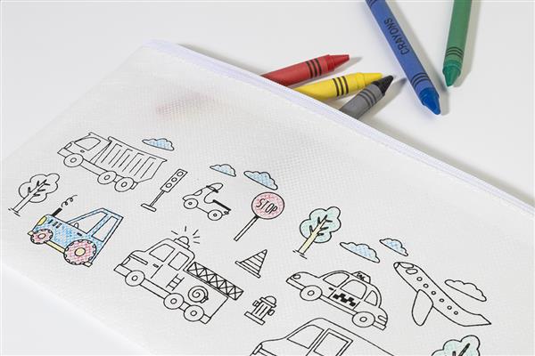 Zapinany na suwak piórnik do kolorowania z włókniny RPET z 5 kredkami.