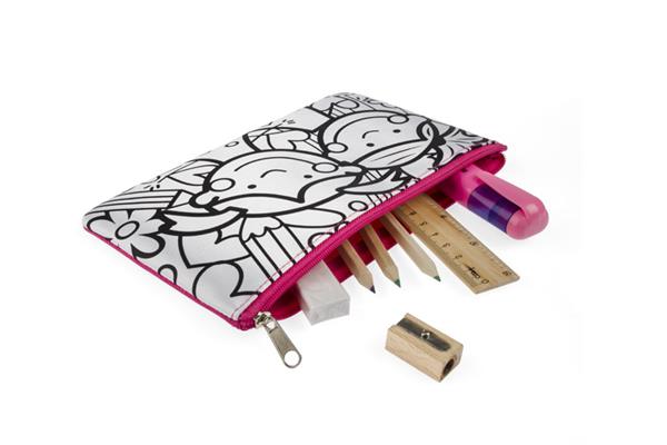 Piórnik ozdobiony grafiką do samodzielnego pokolorowania. Upominek, który potrafi zaangażować i bawić. W zestawie dołączone pisaki w 6 kolorach. Piórnik jednokomorowy zapinany na zamek.