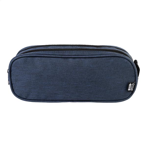 Zapinany na zamek piórnik z poliestru RPET z 2 przegrodami. Poliester RPET 300D, z charakterystyczną metką RPET.