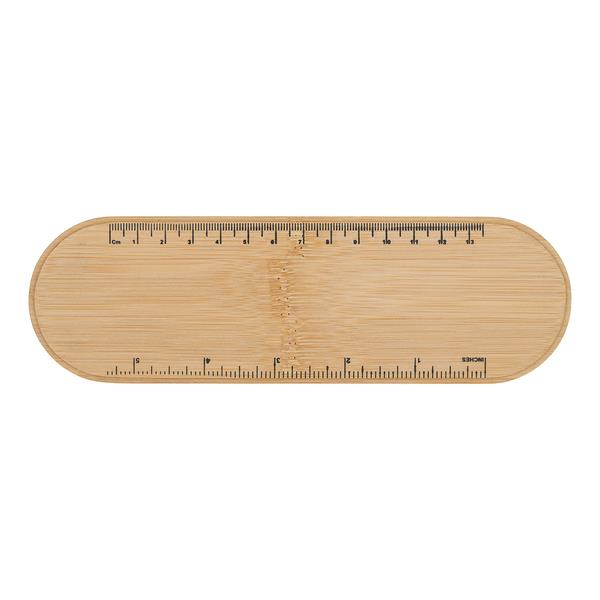 Filcowy piórnik z bambusową pokrywą i elastycznym paskiem. Pokrywka posiada uchwyt na telefon i linijkę.