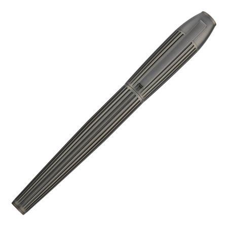 Ten kształt zapewnia idealną równowagę między siłą i elegancją, charakteryzując się głębokim, ponadwymiarowym wzorem w prążki. Pokryty luksusowym matowym odcieniem brązu, element emanuje minimalistycznym, ale skomplikowanym i wyrafinowanym charakterem. Skrupulatne rzemiosło i subtelne detale sprawiają, że jest on zarówno cenny, jak i dyskretny. Jego konstrukcja prezentuje odważną współczesną estetykę, co skutkuje uderzającym instrumentem piśmiennym.