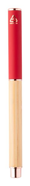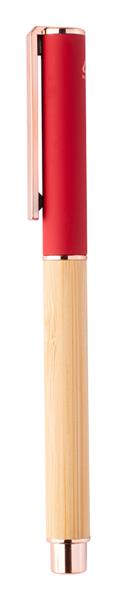 Pióro kulkowe z bambusa i aluminium pochodzącego z recyklingu, z gumowaną skuwką i detalami w kolorze różowego złota.Ze specjalną powłoką pod grawer lustrzany w kolorze różowego złota. Z niebieskim wkładem.