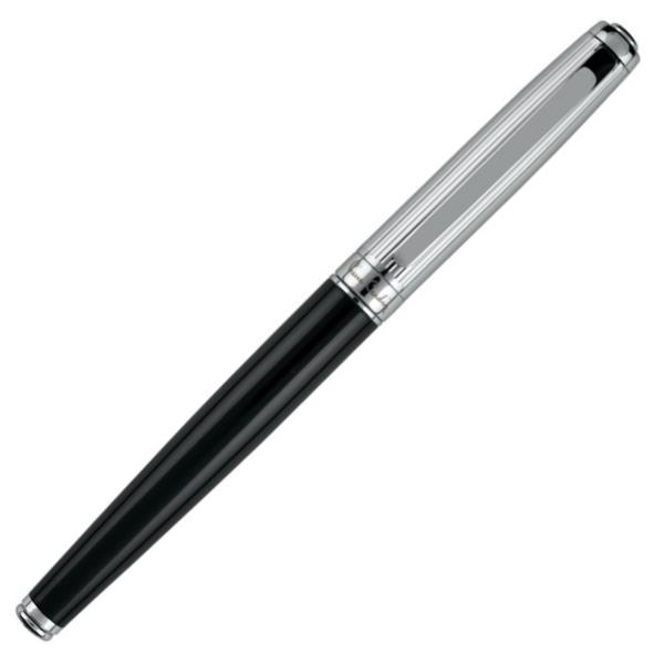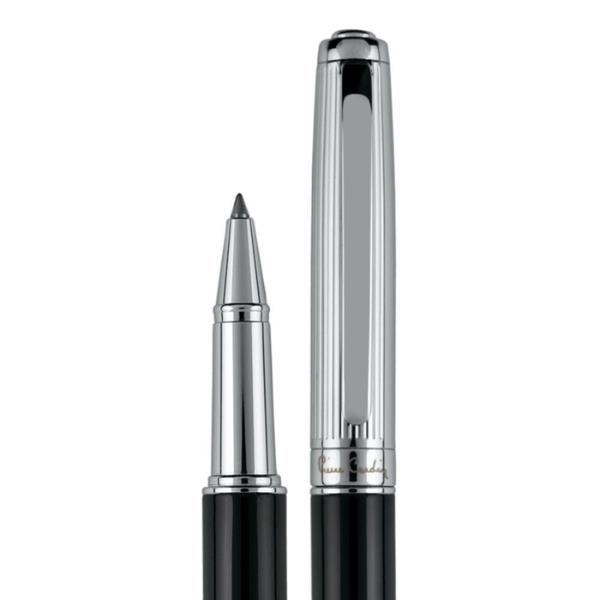 Pióro kulkowe z czarnym, lakierowanym korpusem i srebrnymi elementami. Wyposażone w wysokiej jakości niebieski wkład z końcówką 0,6 mm. W zestawie z wkładem zapasowym piszącym na czarno. Zapakowany w eleganckie pudełko prezentowe z certyfikatem autentyczności Pierre Cardin.