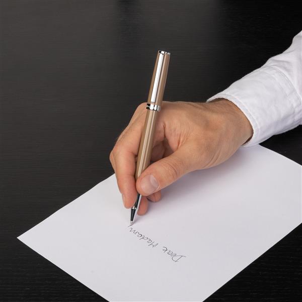 Nasza kultowa sylwetka Gear powraca z ponadczasowym zwrotem, z uproszczonym pierścieniem logo i błyszczącym lakierem. Ta nowa wersja Gear jest już ikoną i prawdopodobnie naszym najbardziej komercyjnym produktem, z luksusowym, błyszczącym lakierem na oprawie. Wyrafinowane podejście do minimalistycznego wzornictwa sprawia, że jest to natychmiastowy klasyczny przyrząd do pisania i jest dostępny w szerokiej gamie kolorów, zarówno neutralnych, takich jak ta wersja camel, jak i opcji pop bloku kolorów.