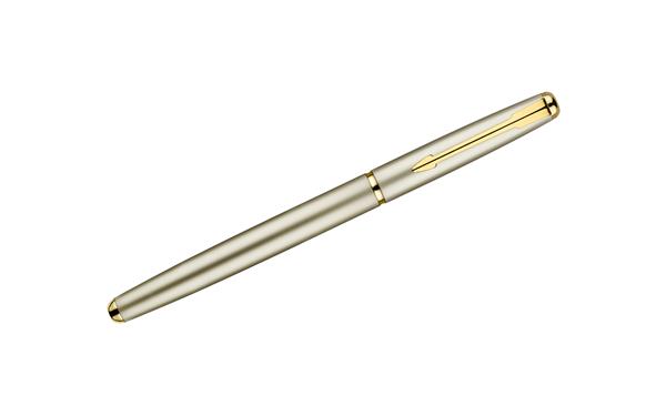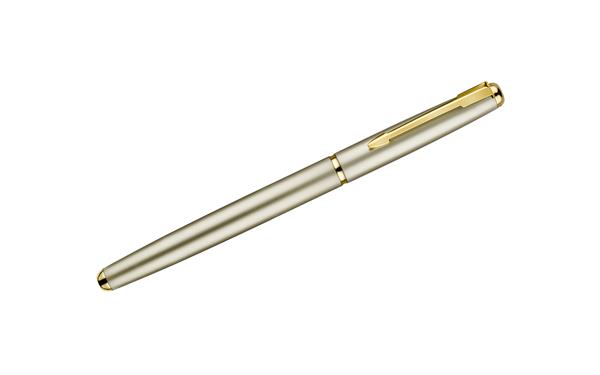 Pióro kulkowe wykonane z metalu ze złotymi wykończeniami. Klasyczne wzornictwo zapewnia mu ponadczasową elegancję.