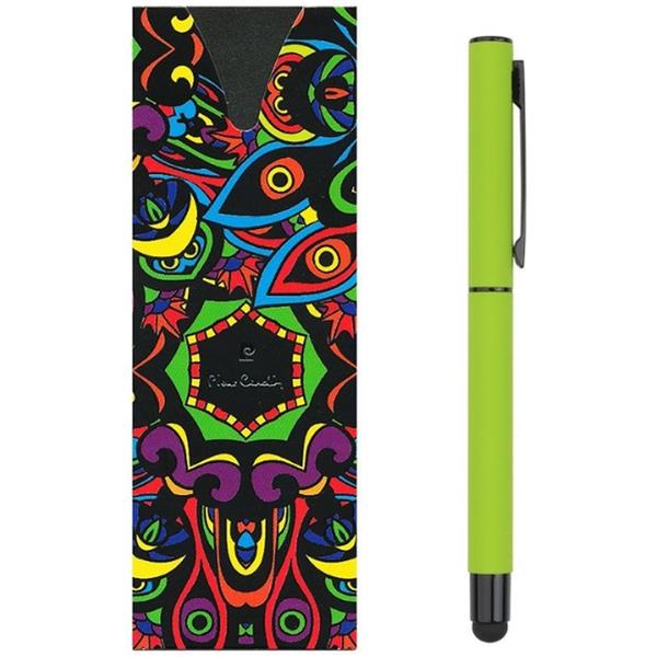 Pióro kulkowe wykonane z aluminium w modnych, intensywnych kolorach. Posiada przyjemną w dotyku powierzchnię soft touch i czarne detale oraz funkcję touch pen. Wyposażone w wysokiej jakości niemiecki wkład Schneider, piszący na niebiesko z końcówką 0,5 mm. Zapakowane w eleganckie etui prezentowe z certyfikatem autentyczności Pierre Cardin.