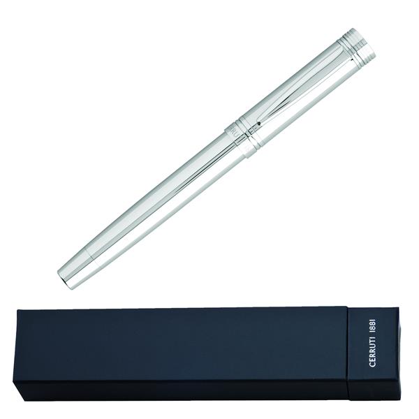 Eleganckie pióro kulkowe z kolekcji Cerruti 1881 wykonane z mosiądzu, piszące na czarno. Zapakowane w ozdobne pudełko prezentowe. Rozmiar: Dia. 10 / h. 135 mm Kolor: Srebrny