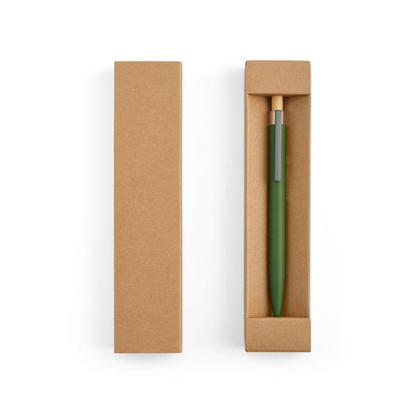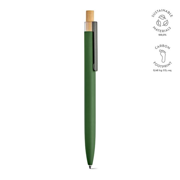Ekologiczny długopis o przemyślanej konstrukcji z korpusem z aluminium pochodzącego z recyklingu i elementami z rPET i bambusa na górze. Posiada 1 km niebieskiego tuszu Dokumental®. Dostarczany w przyjaznym dla środowiska naturalnym pudełku typu kraft.