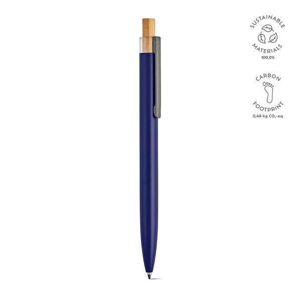 Ekologiczny długopis o przemyślanej konstrukcji z korpusem z aluminium pochodzącego z recyklingu i elementami z rPET i bambusa na górze. Posiada 1 km niebieskiego tuszu Dokumental®. Dostarczany w przyjaznym dla środowiska naturalnym pudełku typu kraft.
