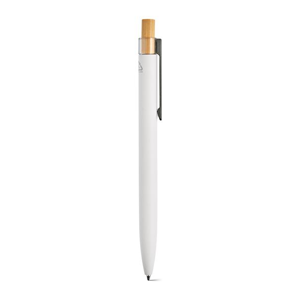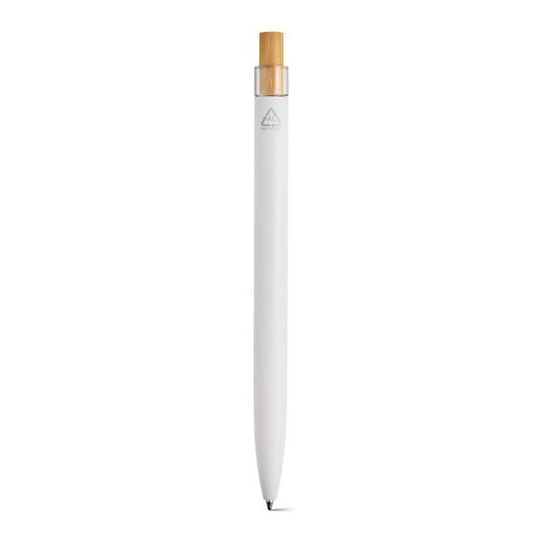 Ekologiczny długopis o przemyślanej konstrukcji z korpusem z aluminium pochodzącego z recyklingu i elementami z rPET i bambusa na górze. Posiada 1 km niebieskiego tuszu Dokumental®. Dostarczany w przyjaznym dla środowiska naturalnym pudełku typu kraft.