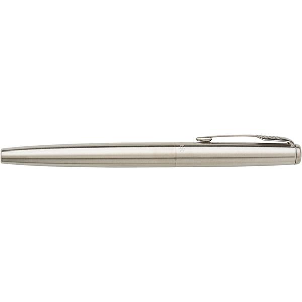 Pióro wieczne Parker Jotter Core z zatyczką, wkład w niebieskim kolorze, zapakowane w pudełko upominkowe, produkt wykonany z metalu i stali nierdzewnej