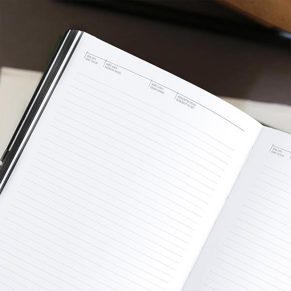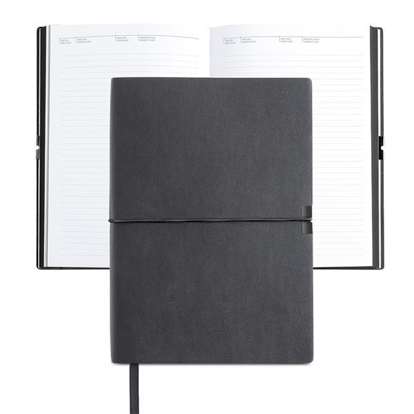 Planer w okładce z PU, posiada poziomą elastyczną gumkę do zamykania i tasiemkę. Wnętrze składa się ze 168 wieczystych stron, które można wykorzystać do zapisywania spotkań, z miejscem na uzupełnienie tematu. Kartki wykonane są z białego papieru o gramaturze 70 g i posiadają certyfikat FSC (papier pochodzi z lasów zarządzanych w sposób zrównoważony). Języki: PT / ES / EN / FR.