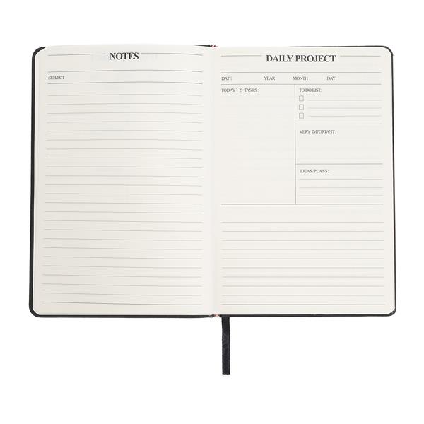 Planner, który doskonale umożliwia skuteczną organizację życia i czasu. Łączy w sobie elementy kalendarza, notatnika oraz organizera. Jego układ umożliwia planowanie zadań na każdy dzień, ale także sporządzanie list, tworzenie notatek oraz spisywanie pomysłów czy ważnych myśli. Posiada uchwyt na długopis, tasiemkę do zaznaczania stron oraz elastyczną gumkę do zamykania. 80 kartek o gramaturze 70 g/m2. Długopis nie jest dołączony. Na okładce tłoczony napis: „PLANNER”.