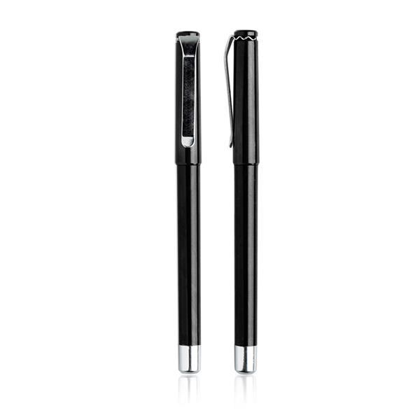 Pióro kulkowe z niebieskim atramentem żelowym. Posiada metalowy klips oraz nasadkę. Gumowy uchwyt sprawia, że pióro jest niezwykle wygodne i łatwe w użyciu. Rozmiar: 14,2 x 0,9 cm T1 (tampodruk): 4 x 0,6 Kolor: Czarny