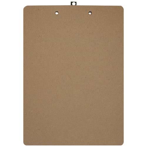 Poręczna podkładka wykonana z MDF (płyta pilśniowa średniej gęstości). Klips służący do przytrzymywania kartki papieru wykonany jest z żelaza i polipropylenu. Wymiary: 32 x 23 x 0,24 cm.