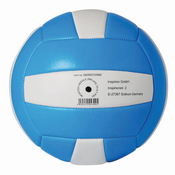 Piłka do siatkówki plażowej PLAY TIME wykonana ze skóry syntetycznej. Dwie warstwy z osiemnastoma panelami, rozmiar 5. Materiał: PVC/Poliester/Bawełna Kolor: biały, jasnoniebieski Tagi: Piłki,artykuły rekreacyjne,zabawki,artykuły sportowe,outdoor
