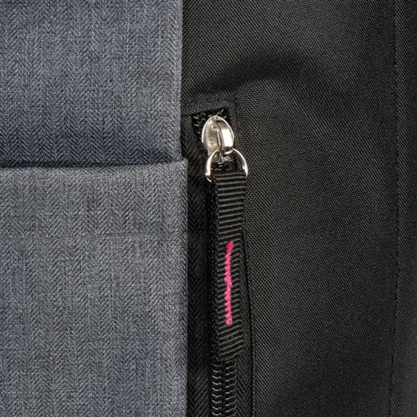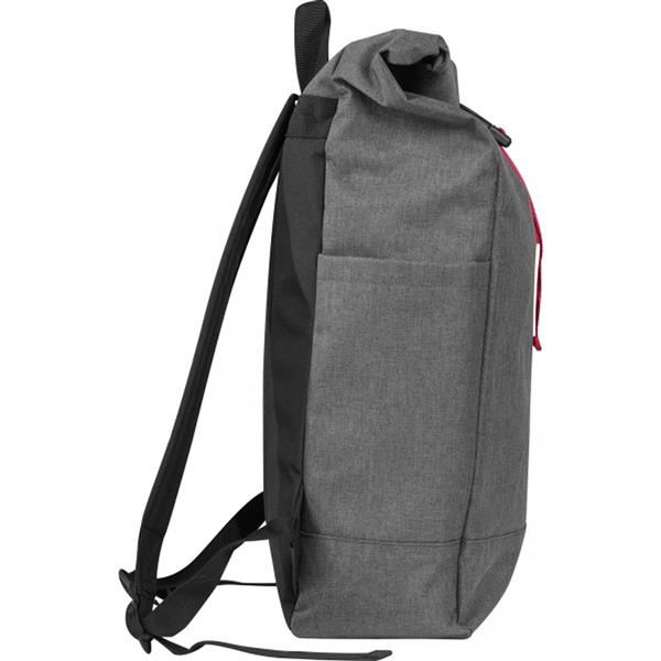 Plecak wykonany z poliestru z watowanymi szelkami. Plecak można zamknąć przez zrolowanie lub złożenie.