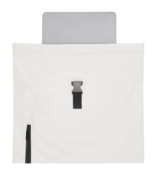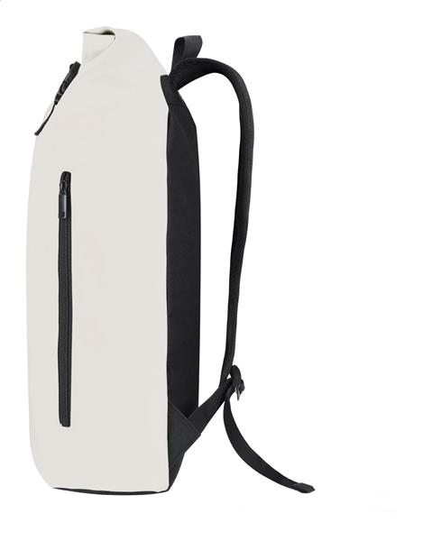 Plecak z miękkiej skóry PU z zapięciem na sprzączkę, wyściełaną kieszenią na laptopa (15″), wyściełanymi plecami i paskami na ramiona.