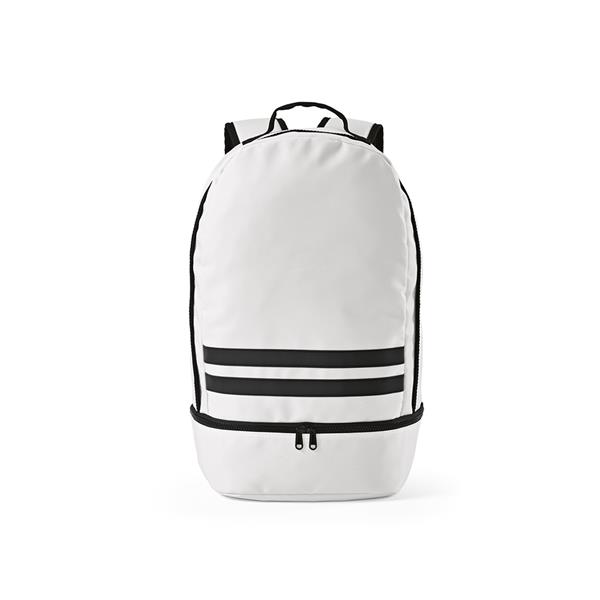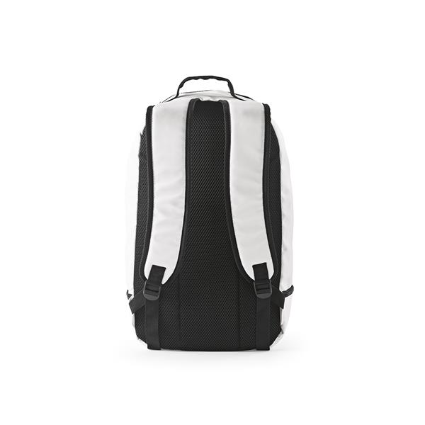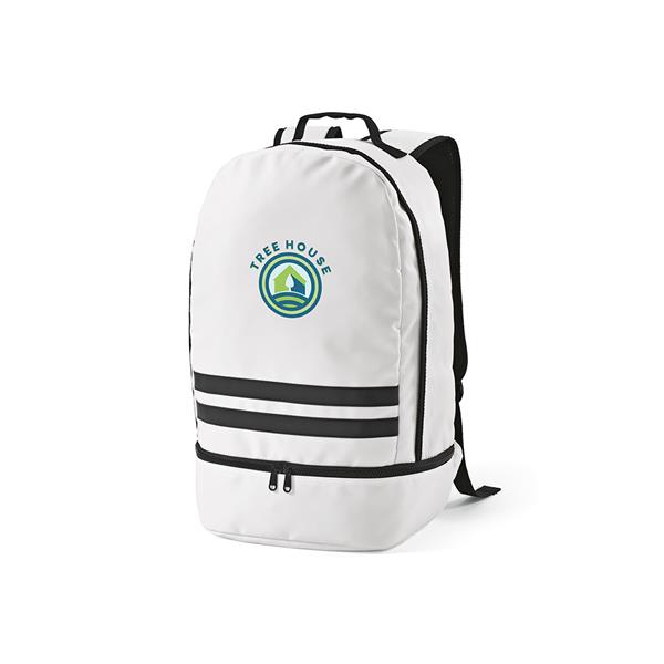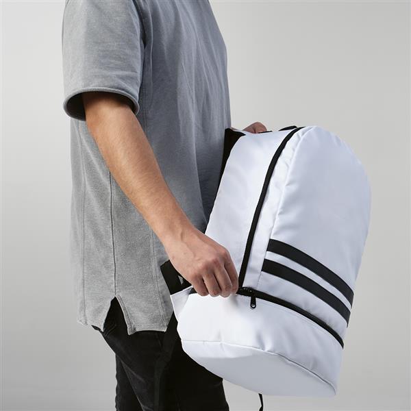 Wykonany z rPET, ten 25-litrowy plecak został zaprojektowany w oparciu o funkcjonalność. Z wyściółką pleców, wzmocnionym górnym uchwytem i dwoma czarnymi odblaskowymi paskami z przodu dla bezpieczeństwa. Na spodzie znajduje się oddzielna kieszeń idealna na buty. Projekt ukierunkowany na funkcjonalność.