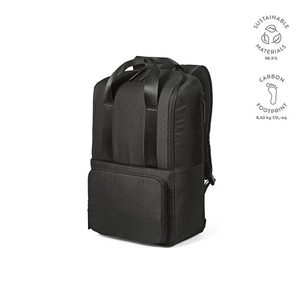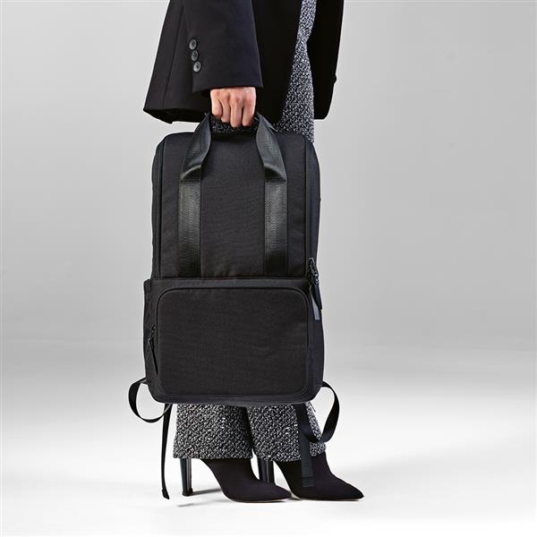 Ten 18-litrowy plecak jest wykonany z poliestru 600D pochodzącego z recyklingu, co zapewnia trwałość i zrównoważony rozwój. Posiada przestronną komorę główną, dedykowane miejsce na laptopa (15.6″) i wyściółkę pleców. Posiada również pasek do wózka do użytku podczas podróży.