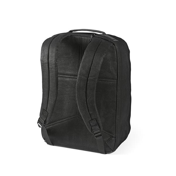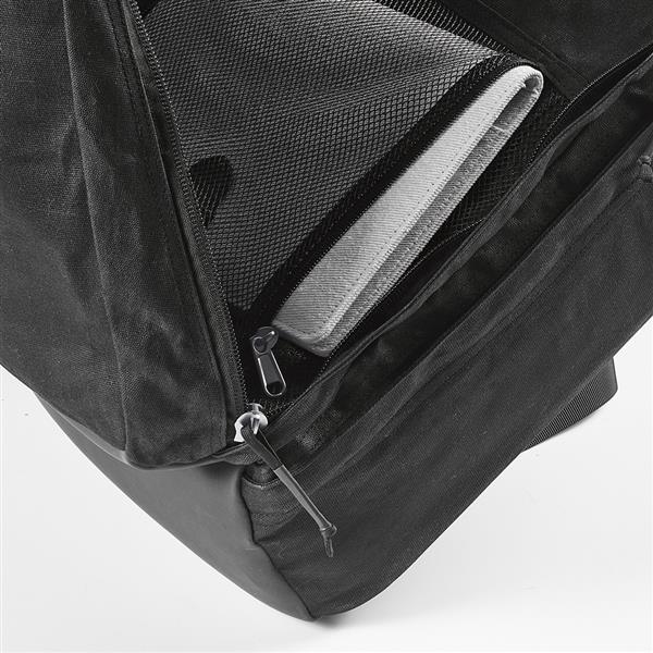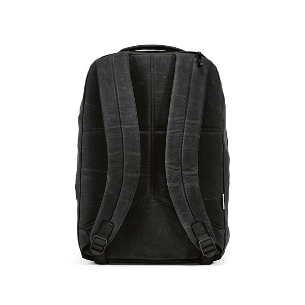 Nasz plecak o pojemności 27 l jest wykonany z bawełny z recyklingu o gramaturze 230 g/m2 z powłoką woskową. 2 główne przegrody, 1 ukryta kieszeń przednią i mała kieszeń zapinana na zamek za górnym uchwytem. Wewnątrz znajduje się wyściełana przegroda na laptopa (17″). W komplecie indywidualna bawełniana torba z recyklingu.